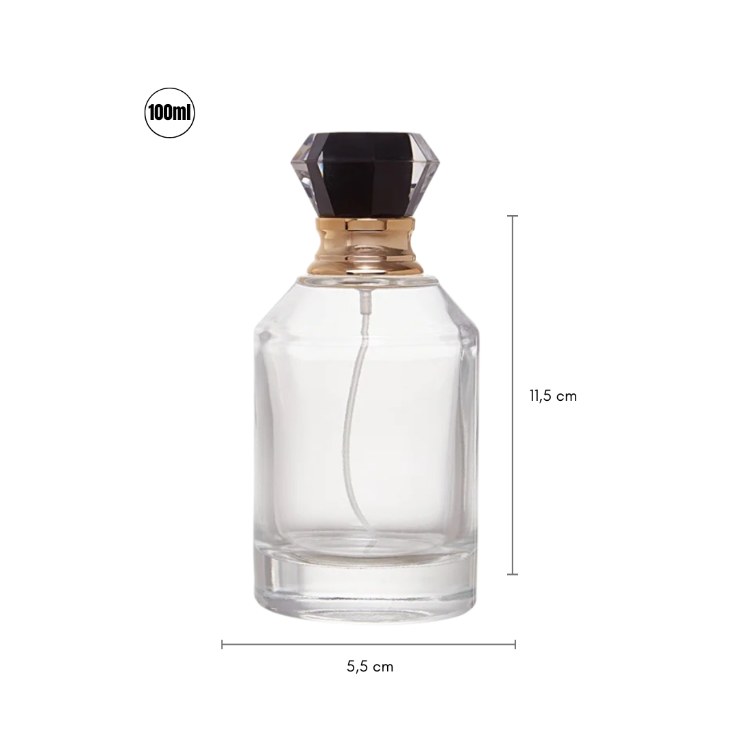Feito em vidro, material ideal para preservar a qualidade das fragrâncias, o frasco garante proteção contra reações químicas e mantém a integridade da fórmula por mais tempo. A válvula spray oferece uma aplicação precisa e controlada, enquanto a tampa completa o visual com um toque de elegância.