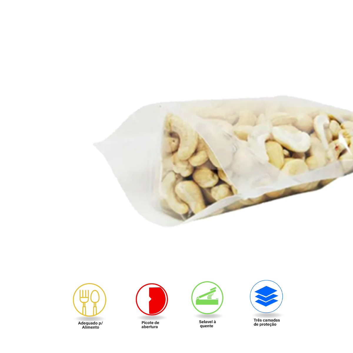 Sua estrutura é formada por pet, nylon poli e polietileno transparente, o que confere além da alta barreira contra gases, umidade e oxigênio uma proteção eficiente contra a luz (raios UV) que interferem diretamente na aparência, sabor e qualidade de diversos produtos tanto alimentícios como químicos e farmacêuticos.