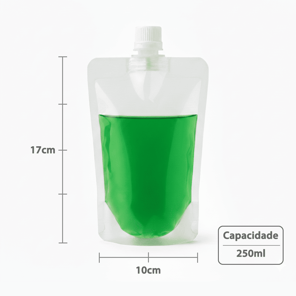 Stand Up Pouch c/ Bico e Tampa ? 10x17+3 250 ml ? Embalagem Transparente