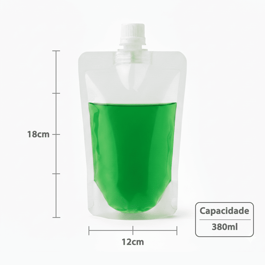Stand Up Pouch c/ Bico e Tampa ? 12×18+3 380 ml ? Embalagem Transparente